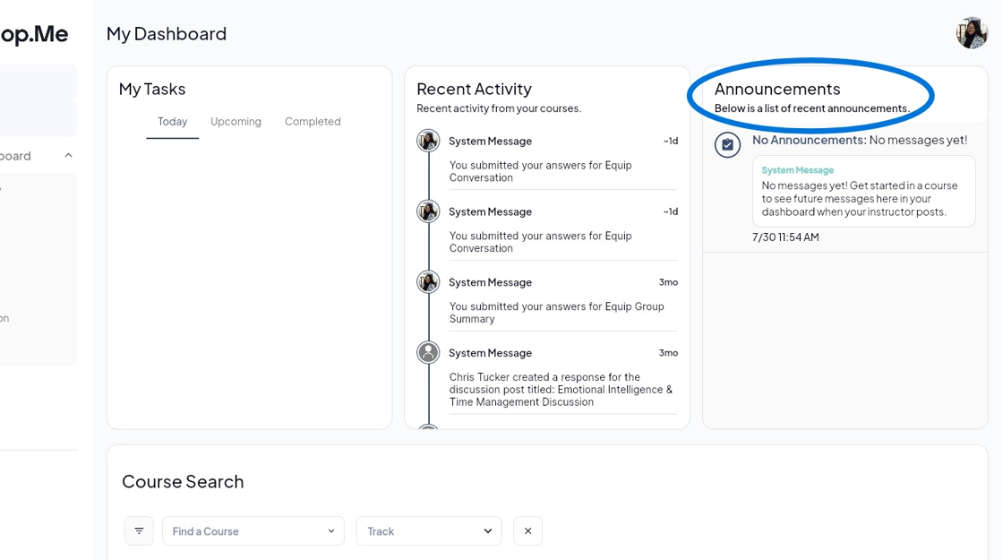 These instructions are designed to help users navigate the Develop.Me dashboard with ease. They provide a clear overview of each section’s purpose and how to use it for managing coursework, tracking activity, and accessing key resources.
