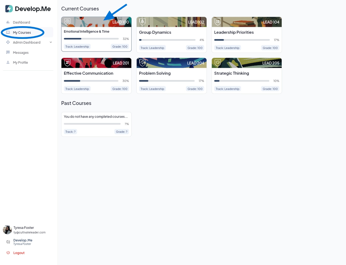 1. To view your course assignments, select the desired course from the "My Course" section.
