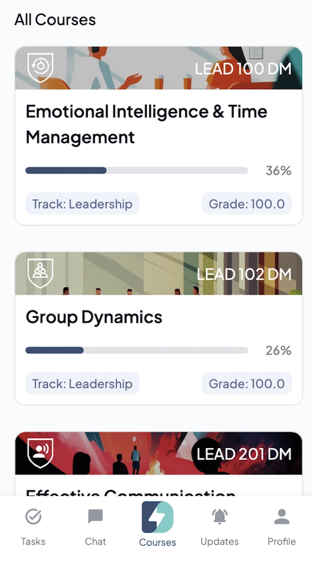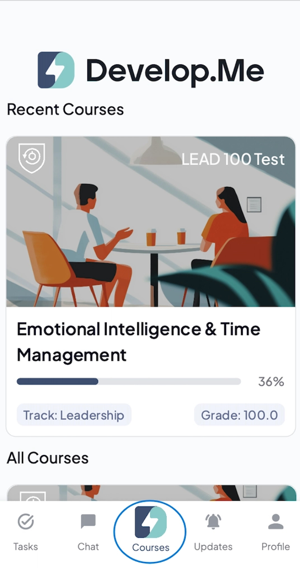 1. From the bottom menu bar, tap on "Courses" to view all of the courses you're enrolled in.